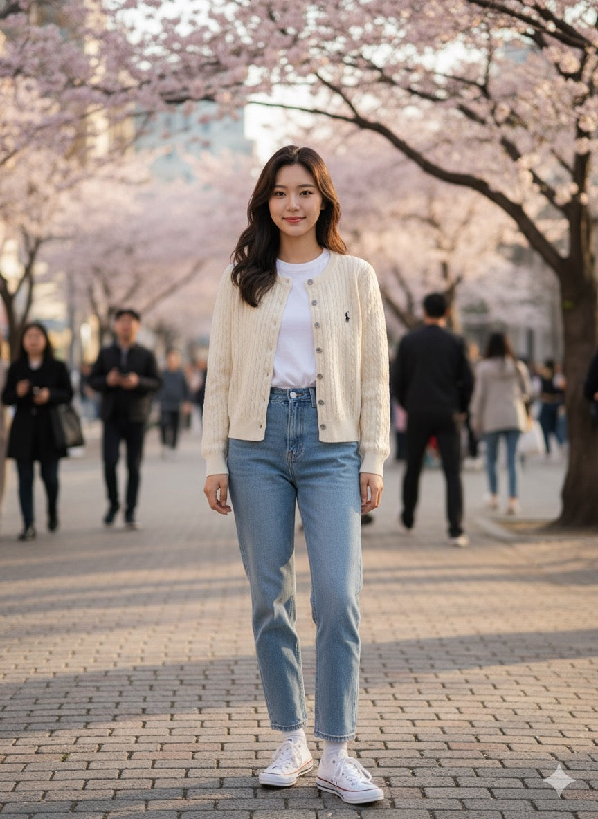 Polo-Knit Cardigan - White