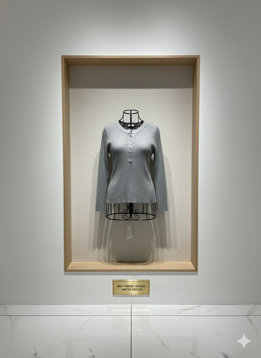 Ribbed Henley Top - Ash
